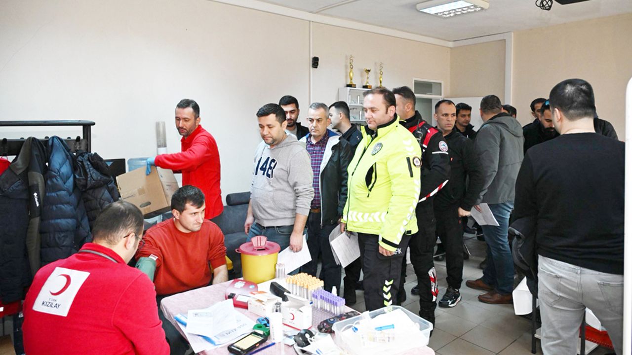 Kan bağışında bulunarak hayatlara umut olmak için birbirleriyle yarışan polisler, uzun kuyruklar oluşturdu, gün boyu süren etkinlikte kan verdi, can oldu.