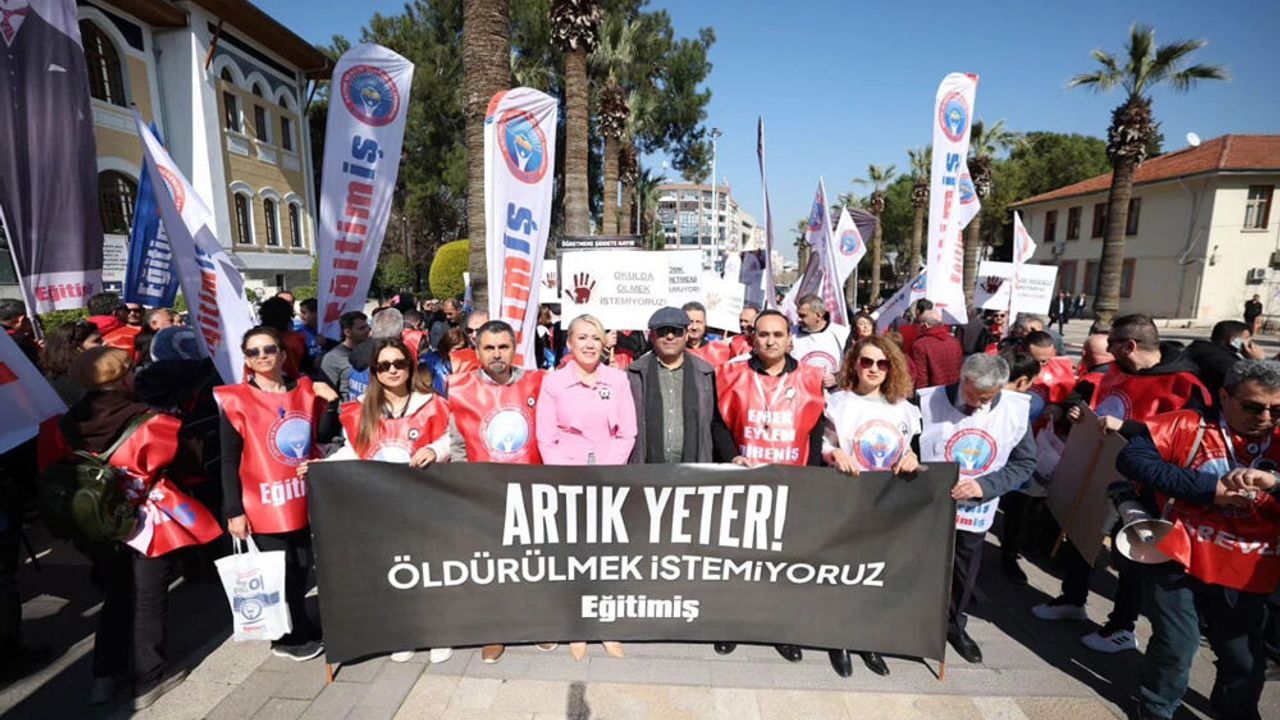 Eğitimciler, üzerinde “Artık yeter, öldürülmek istemiyoruz” yazılı pankart açtı. Eğitimciler adına açıklamayı Hürriyetçi Eğitim-Sen Başkanı Ersin Dede yaptı. Tepkilerinin bir soruna dikkat çekmenin ötesinde, ihmal ve duyulmayan çığlığı yeniden dile getirmek üzere bir araya geldiklerini belirten Dede, “Bu çığlık her sabah kendi ışığından azalıp çocuklarımızın geleceğini aydınlatmak için tükenen öğretmenlerin çığlığı. Daha dün geleceği daha parlak olsun diye emek veren bir öğretmenimizin ışığı söndürüldü. Hem de uğruna kendini tükettiği öğrencisi tarafından. Bu olay hepimizin vicdanında kapanmayacak bir yara olarak kalacaktır” dedi.