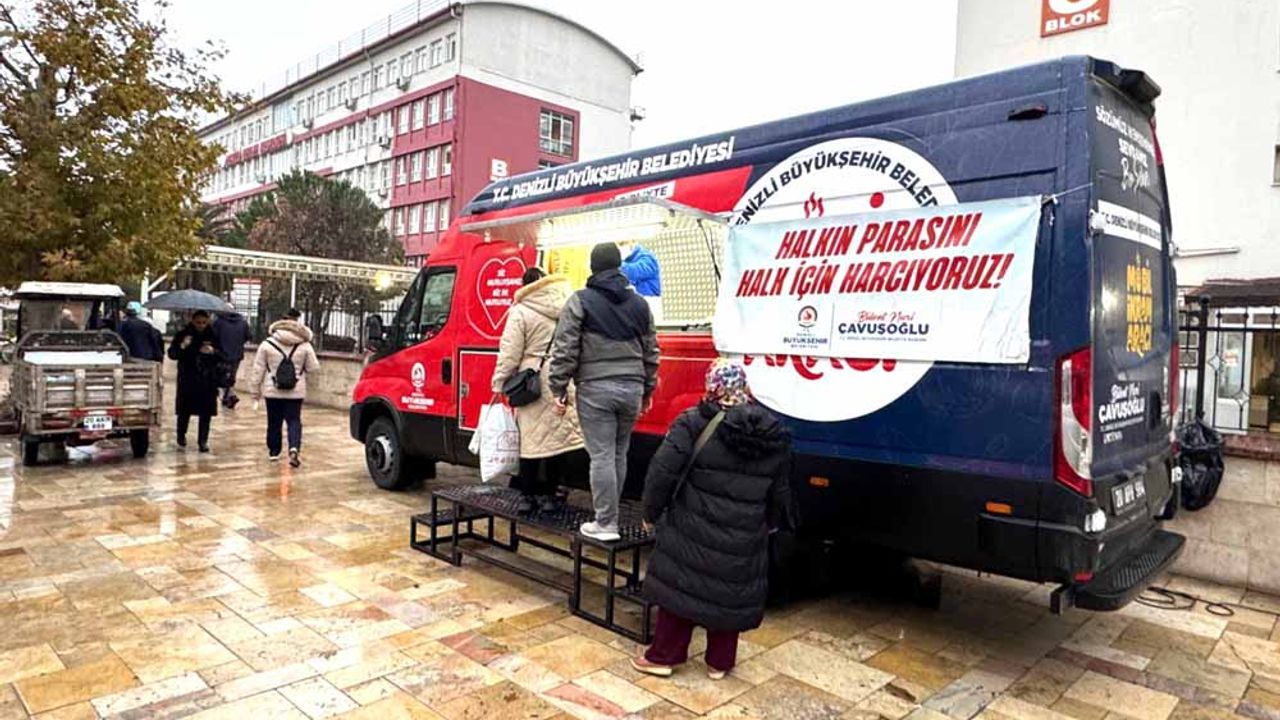 Denizli’de etkili olan soğuk hava ve sağanak yağışa rağmen sosyal belediyecilik faaliyetlerine ara vermeden devam eden Denizli Büyükşehir Belediyesi, mobil ikram araçlarını bu kez sağlık hizmeti alan vatandaşlar ve yakınları için seferber etti. Denizli Büyükşehir Belediyesi Sosyal Hizmetler Dairesi Başkanlığı Aşevi Şube Müdürlüğü, her gün şehrin farklı bir bölgesinde hizmet veren ikram aracını bu kez Denizli Devlet Hastanesi önünde konuşlandırdı. Sabahın erken saatlerinden itibaren başta hasta ve yakınları olmak üzere tüm vatandaşlara sıcak çorba dağıtan ekipler hem içleri ısıttı, hem de gönülleri fethetti. Yağmurlu ve soğuk havada, özellikle doktor randevusunu bekleyen hasta ve yakınları ikram aracına yoğun ilgi gösterdi.