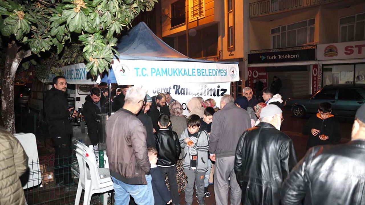 Pamukkale Belediyesi tarafından, birlik ve beraberlik duygularını pekiştirmek amacıyla düzenlenen programda, belediye ekipleri kurulan ikram stantlarında vatandaşların kandilini kutladı. Cami cemaati ve bölge sakinlerinin yoğun ilgi gösterdiği etkinlikte, kandil geleneğinin yaşatılmasına katkı sağlandı. Gece boyunca devam eden ikramlarda, binlerce Pamukkaleliye ulaşılarak kandilin bereketi tüm ilçeye yayıldı.