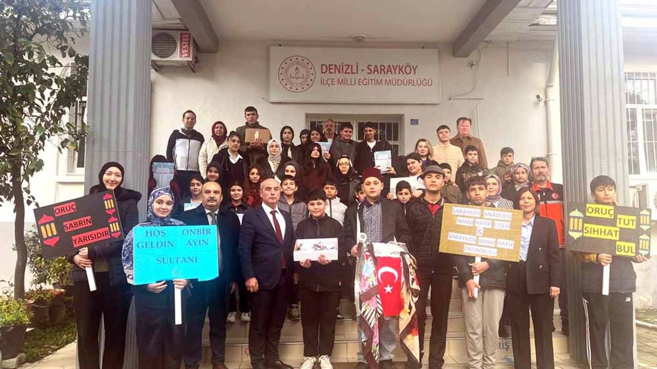 Denizli’nin Sarayköy ilçesinde Ramazan ayının manevi atmosferi, öğrencilerin düzenlediği anlamlı bir sosyal sorumluluk projesiyle sokaklara taşındı. "Geleneklerimizle Ramazan Ayı Ruhunu Yaşatıyoruz" sloganıyla gerçekleştirilen etkinlikte Sarayköy Anadolu İmam Hatip Lisesi ve Ortaokulu öğretmen ve öğrencileri ilçe merkezinde yürüyüş yaptı. Ellerinde Ramazan ayının önemini anlatan pankartlar taşıyan öğrenciler, ilçe sokak ve caddelerinde vatandaşlarla buluştu. Geleneksel kıyafetler giyen öğrenciler, davul eşliğinde söyledikleri manilerle eski Ramazanları aratmayan görüntüler oluşturdu. Yürüyüş boyunca Sarayköy halkına bayram şekeri, imsakiye ve iftar hurması ikram edilerek Ramazan’ın paylaşma ve dayanışma ruhu yansıtıldı. Vatandaşların yoğun ilgi gösterdiği etkinlikte, özellikle çocukların ve gençlerin geleneksel Ramazan kültürünü yaşatarak sahada aktif rol alması takdir topladı. İlçe sakinleri, geçmiş yılların Ramazan heyecanını hatırlatan bu anlamlı organizasyondan duydukları memnuniyeti dile getirdi.