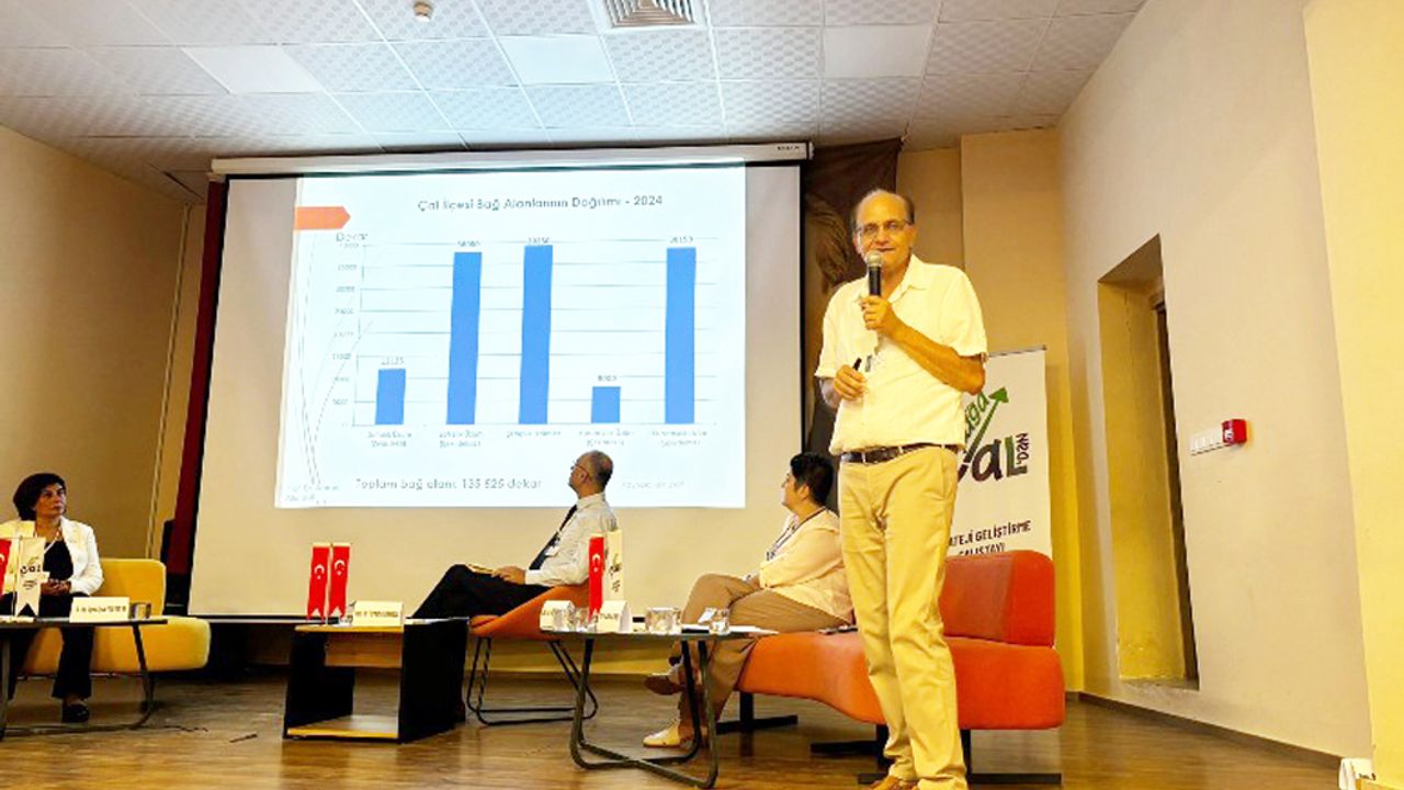 Ege Üniversitesi Ziraat Fakültesi Öğretim Üyesi Prof.Dr. Ahmet Altındişli “Dünya ve Türkiye Bağcılığı Işığında Çal Bağcılığının Önemi ve Potansiyeli” konu başlığıyla yaptığı sunumunda, Dünya’da 95 ülkenin üzüm ürettiğine dikkat çekerek, Türkiye’nin diğer ülkelerden farkının üzümün doğduğu topraklara sahip olması ve çeşitlerinin Çin’e kadar yayılması olduğunu kaydetti. Bu bilgi birikiminin çok iyi kullanılması gerektiğini dile getiren Altındişli, “Denizli, toprak ve iklim yapısı açısında bağcılıkta güçlü bir potansiyele sahip. Çal ve Güney ilçelerinde marka olabilecek çok fazla üzüm çeşitleri bulunuyor, özellikle Çalkarası üzüm çeşidi çok değerli. Bizlere düşen bu kıymetli çeşitleri tanıtıp markalaşma olmalıdır” dedi.